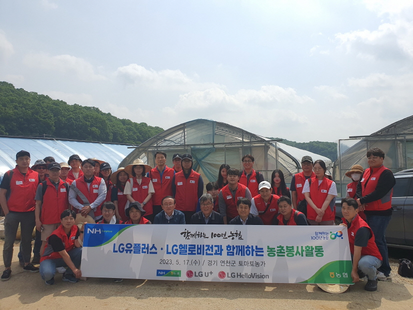 농협중앙회와 함께 진행한 이번 봉사활동에는 LG유플러스와 LG헬로비전 임직원 40여명이 참여해 경기도 연천군 소재 토마토 재배 농과 2곳에서 과실이 건강하게 자랄 수 있도록 토마토 곁순을 제거하고 작물을 정리하는 작업에 참여했다.