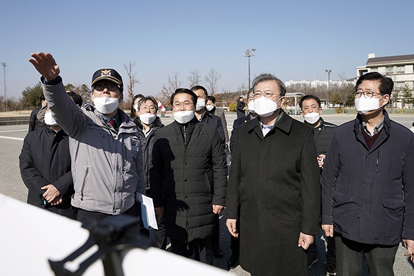 문 대통령은 지역 주민들에게는 “(임시생활시설과 관련해) 주민들이 불안감을 느끼는 것은 너무나 아주 당연한 일”이라며 “그럼에도 불구하고 주민들이 불안감을 떨치고 ‘어려움을 나누자, 오히려 우리가 더 따뜻하게 품어줘야 된다’ 그런 생각을 하면서 교민들을 가족, 형제처럼 따뜻하게 보듬어 주셔서 다시 한 번 감사드린다”고 밝혔다.