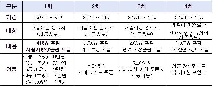 이외에도 기간 중 개별이관과 신한 pLay앱 신규가입을 동시에 진행한 사용자 1,000명은 따로 선정해 최대 1만 신한포인트를 지급한다.