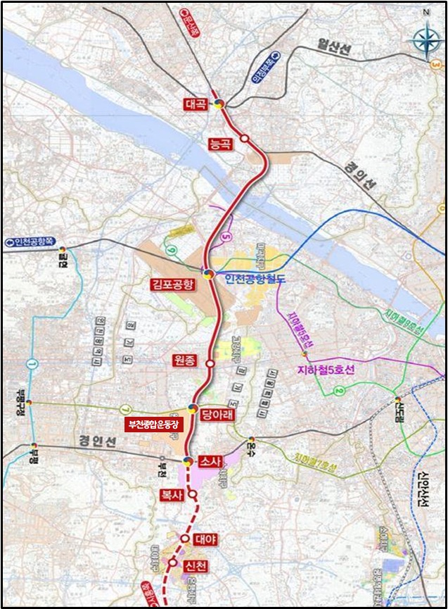 대곡소사선은 경기도 고양시 대곡~경기도 부천시 소사를 연결하는 18.3km 길이의 복선전철이다. 기존 대곡역(지하철 3호선·경의중앙선), 능곡역(경의중앙선)에 3개 역(김포공항역, 원종역, 부천종합운동장역)을 신설해 경기도 고양에서 한강을 지나 김포공항, 부천 소사를 잇는다.