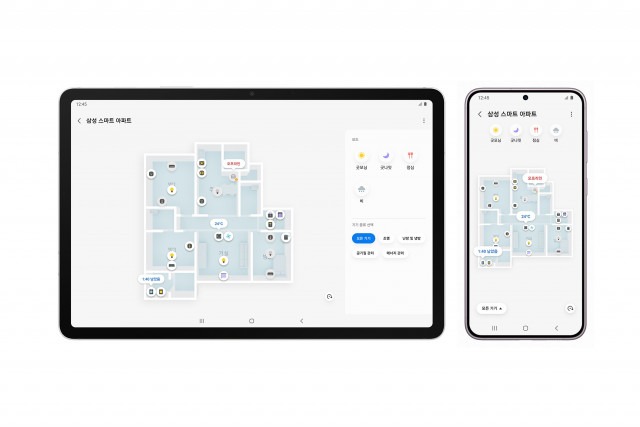 업그레이드된 홈 IoT 솔루션은 스마트싱스 내 스마트 아파트 기능의 메인 화면을 해당 세대의 평면도를 바탕으로 한 맵 뷰를 중심으로 구성한 것이 특징이다.