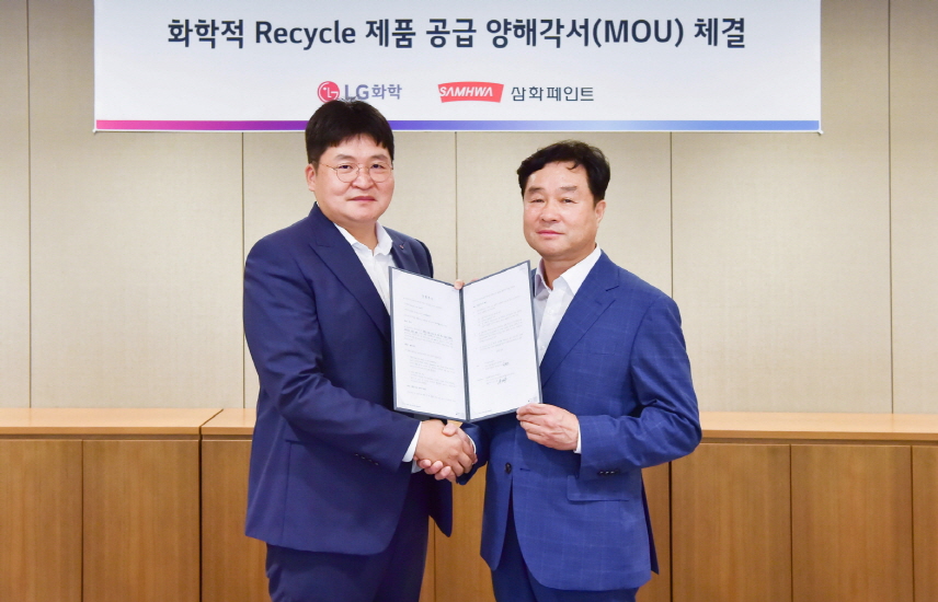 LG화학이 친환경 재활용 페인트 원료를 공급하면 삼화페인트에서 모바일용 코팅재를 만들어 최종 고객인 휴대폰 제조사에 공급예정이다.