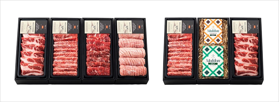 이베리코 선물세트는 부위에 따라 구이용으로 구성된 <프리미엄 이베리코 세트> 2종과 한우브랜드 강진맥우와 혼합 구성된 <이베리코 콜라보 세트> 4종 등 총 6 종을 출시한다.