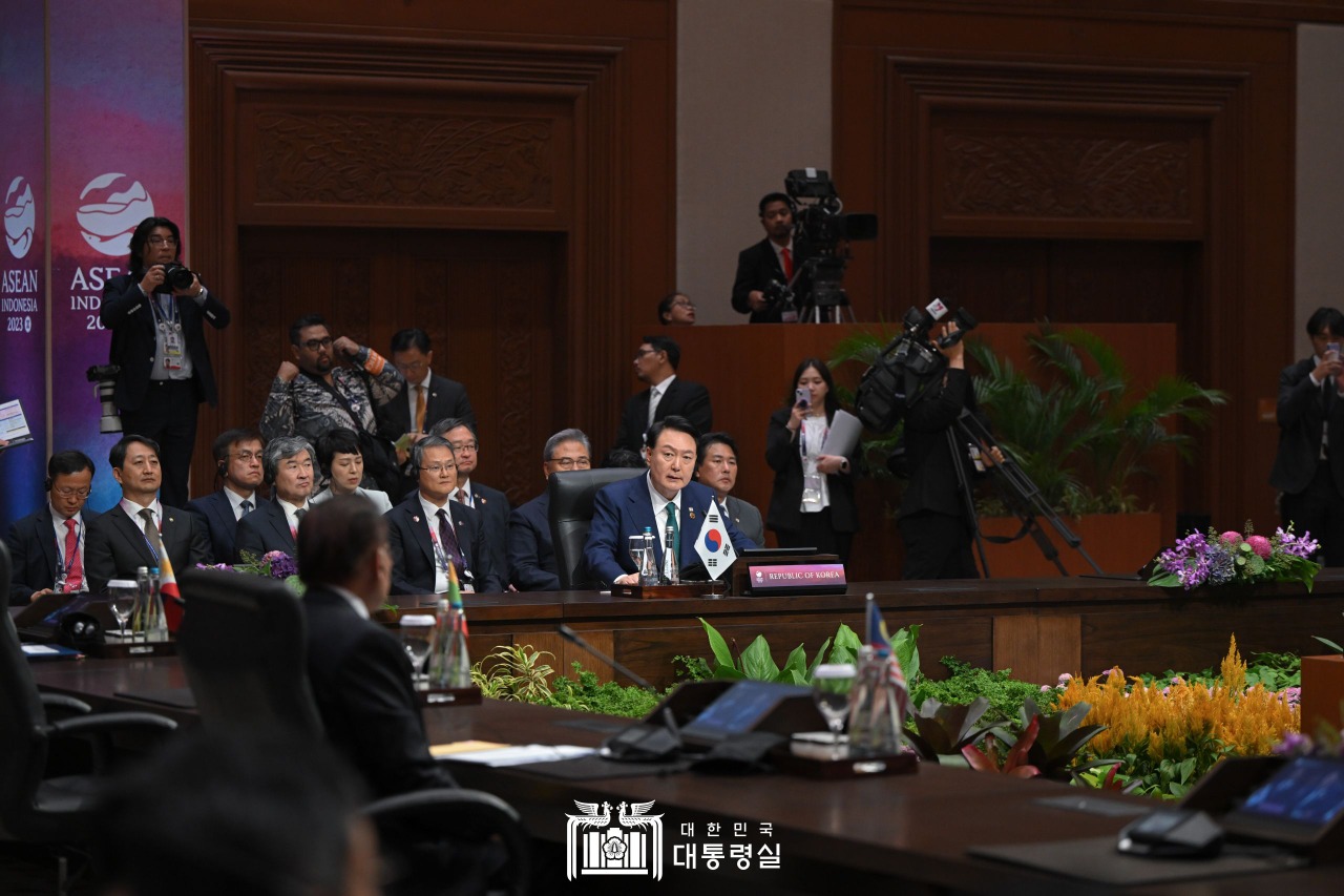 대통령은 이날 인도네시아 자카르타 컨벤션센터(JCC)에서 열린 한-아세안 정상회의 모두 발언에서 “지난 8월 캠프 데이비드 정상회의를 계기로 한미일 협력의 새로운 시대가 열렸다”며 이같이 말했다.