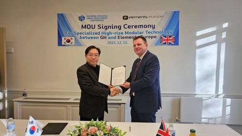 GH는 12∼13일(현지 시간) 영국 런던에서 영국 철골 모듈러 전문업체 엘리먼츠 유럽(Elements Europe), 건축 설계사 HTA Design LLP(이하 HTA) 등과 고층 모듈러 주택 기술 교류를 위한 업무협약(MOU)을 각각 체결했다고 14일 밝혔다.