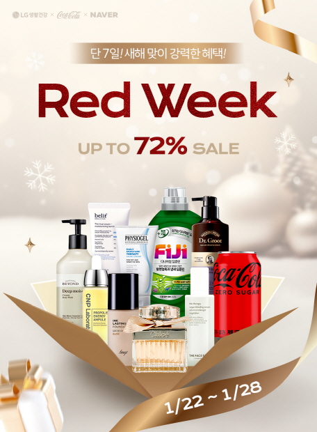 네이버 LG생활건강샵, CNP, 코카-콜라 등 네이버쇼핑 내 각종 LG생활건강 브랜드 스토어에서 개최하는 2024년 맞이 첫 레드위크 행사에는 LG생활건강의 대표 브랜드 전체가 함께 참가해 고객에게 풍성한 할인 혜택과 이벤트 등 차별적 고객가치를 제공한다.
