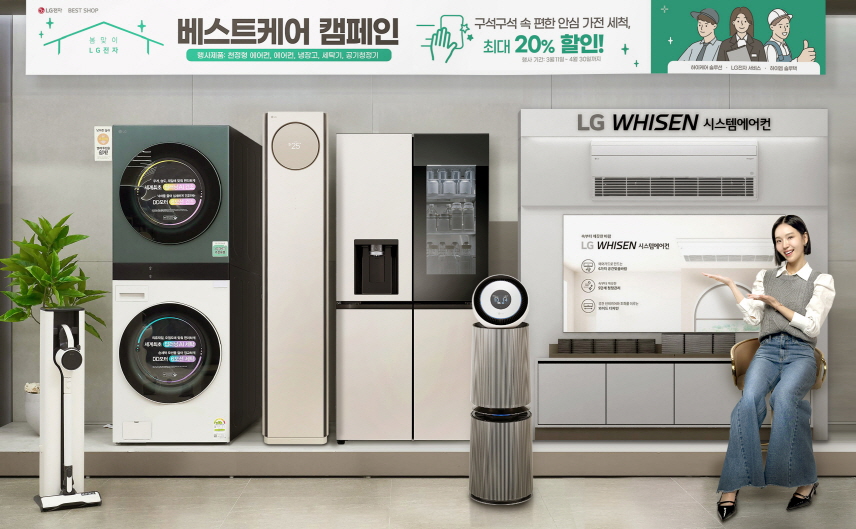 LG전자가 3월 11일부터 4월 30일까지 가전 세척 서비스 요금 할인 혜택을 제공하는 ‘LG전자 베스트 케어 캠페인’을 진행한다.
