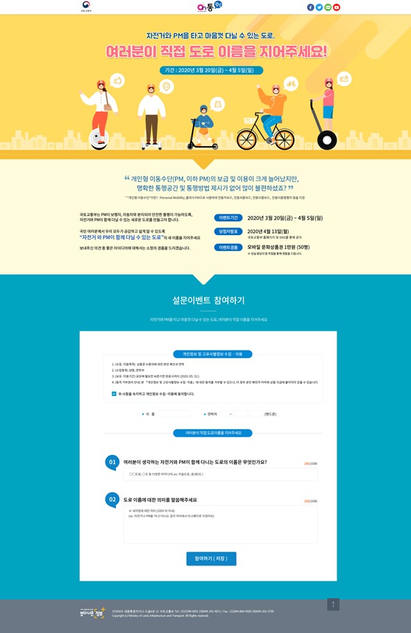 국토부 누리집 On통광장 통해 20일부터 내달 5일까지 PM도로 명칭 공모