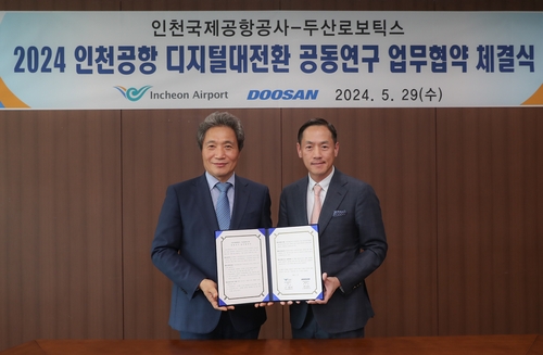 이날 협약식에는 인천국제공항공사 이학재 사장, 김범호 경영본부장, 두산로보틱스 박인원 사장 등 관계자 10여 명이 참석했다.