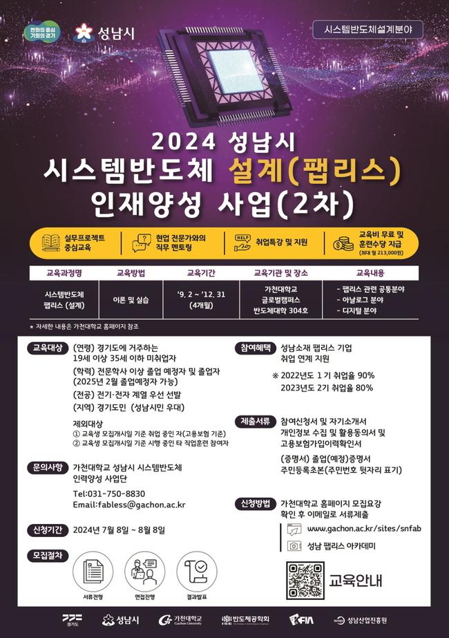 성남시는 7월 8일부터 한 달간 ‘제3기 시스템반도체 팹리스 아카데미’ 2차 교육생 40명을 모집한다.