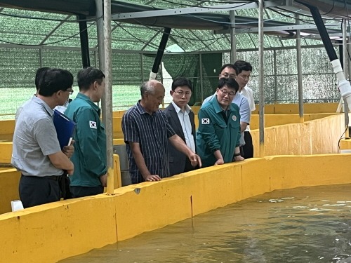 해양수산부 국립수산과학원(이하 수과원) 최용석 원장은 7월 18일과 19일에 전남 고흥과 여수의 양식장을 방문하여 고수온 대비 상황을 사전 점검했다.