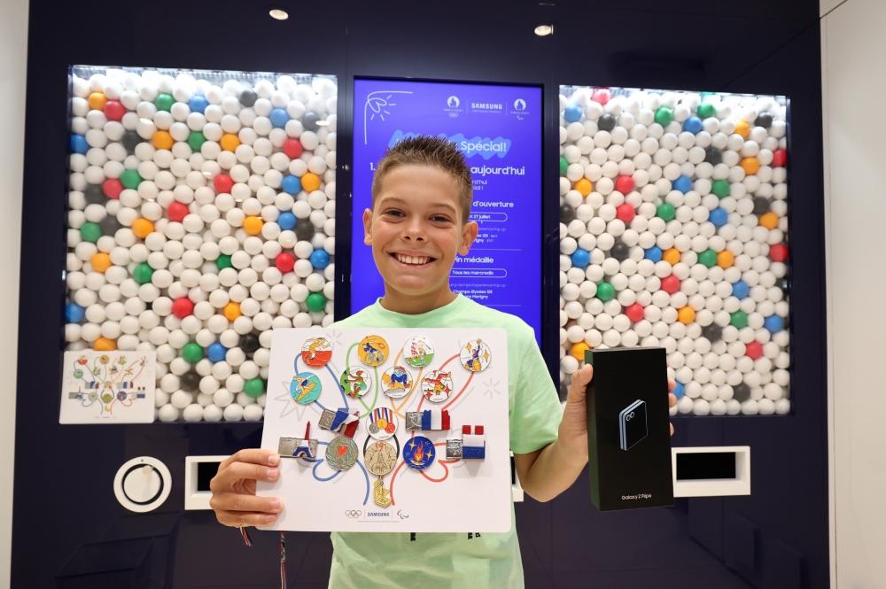 두번째 ‘삼성 올림픽 핀 마스터’의 영예를 거머쥔 토마스 타마렐레(Thomas Tamarelle, 12세, 프랑스)는 “삼성 올림픽 체험관에서의 다양한 체험들이 정말 재미있어서 계속 참여하다 보니 핀을 모두 모으게 됐다”며 “스케치를 이미지로 변환해주는 갤럭시 AI 기능이 마음이 들고 갤럭시 Z 플립6까지 받게 돼 더욱 기쁘다”고 전했다.