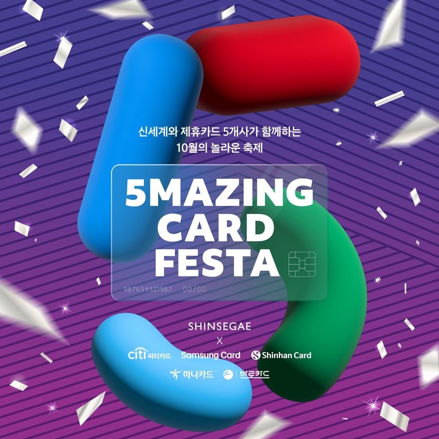 신세계백화점이 제휴카드 5개사(씨티/삼성/신한/하나/BC바로)와 손잡고 ‘오메이징 카드 페스타「5MAZING CARD FESTA」’를 열고 풍성한 쇼핑 혜택을 제공한다.