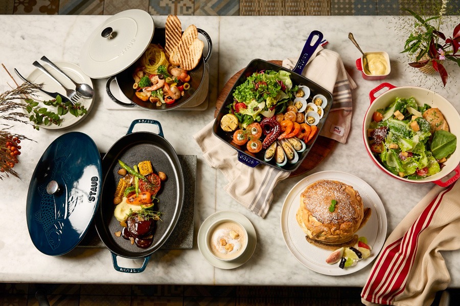 스타우브와 협업한 스페셜 세트 메뉴로는 지중해식 해산물 샐러드와 감바스 파스타로 구성된 ‘스타우브 지중해식 세트’, 프렌치 어니언 수프와 한우 안심 스테이크로 구성된 ‘한우 안심 스테이크 세트’, 홈메이드 리코타 팬케이크와 아메리카노 1+1으로 구성된 ‘홈메이드 리코타 팬케이크&커피 세트’, 그리고 3가지의 ‘스타우브 세트 메뉴’가 준비된다.