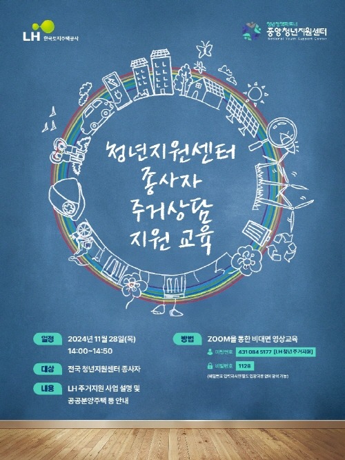 한국토지주택공사(LH)는 28일 청년재단과 함께 전국 청년센터 종사자 1천여 명을 대상으로 주거상담 지원 교육을 시행했다고 밝혔다.