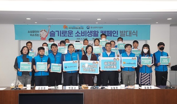 국가공무원노동조합(국공노)과 중소벤처기업부공무원노동조합은 23일 서울 여의도 중소기업중앙회에서 ‘소상공인이 미소짓는 슬기로운 소비생활’ 캠페인 발대식을 열었다.