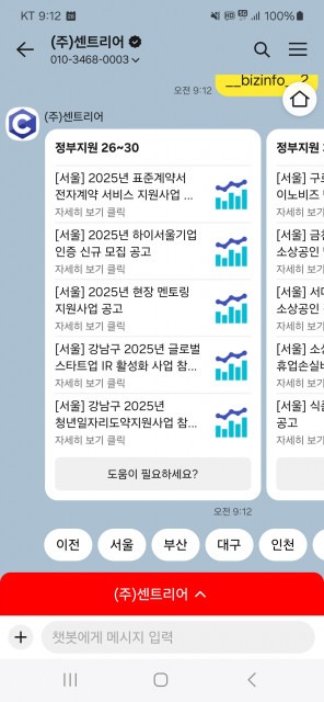 해당 정부지원자금은 센트리어 카카오톡 채널(검색: 센트리어)을 통해 매일 새롭게 업데이트되고 있다. 항상 최신 정보만 제공한다는 점이 큰 강점이다.