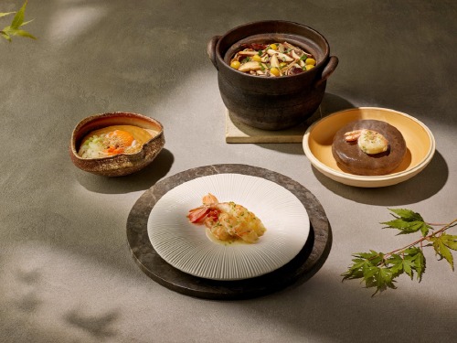 먼저, ‘스시조’에서는 가을 제철 식재료로 구성한 신메뉴 2종을 맛볼 수 있다. 송이버섯과 잎새버섯, 만가닥 버섯 등 가을 버섯을 듬뿍 담은 ‘커리 소스를 곁들인 가을 버섯 돌솥밥’과 제철 식자재인 보탄에비(모란새우)를 참치 내장 젓갈인 슈토 소스에 살짝 재워 뜨거운 돌판에 구워 먹는 요리인 ‘보탄에비 이시야끼’로 감칠맛을 강조했다.