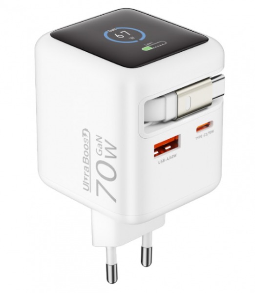 프리미엄 스마트 액세서리 브랜드 울트라부스트(UltraBoost)가 한층 더 똑똑하고 강력해진 ‘70W AI 컬러 액정 케이블 일체형 2포트 충전기(모델명: ULTAI70)’를 새롭게 선보였다. 이번 신제품은 빠른 충전 속도와 세련된 디자인, 그리고 안전성을 모두 만족시키는 차세대 고속 충전기로, 스마트폰, 태블릿, 노트북 등 여러 기기를 사용하는 현대인의 라이프스타일에 최적화된 제품이다.