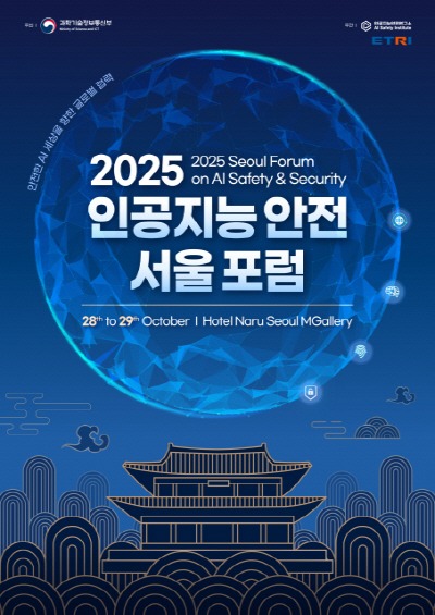과학기술정보통신부(이하 ‘과기정통부’)가 주최하고, 한국전자통신연구원 인공지능안전연구소가 주관하는 ‘2025 인공지능 안전 서울 포럼(Seoul Forum on AI Safety & Security, 이하 SFASS)’이 10월 28일부터 29일까지 서울 호텔 나루 엠갤러리에서 열린다.