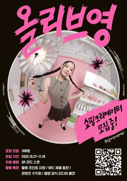 ‘셔터브리티’ 6기 모집은 오는 11월 16일까지 진행되며 총 300명 규모를 선발한다. 올리브영 회원이라면 누구나 앱 내 이벤트 기획전 페이지를 통해, 혹은 매장에 비치된 QR코드 스캔을 통해 지원 가능하다. 선발된 인원은 오는 12월 12일 CJ인재원에서 열리는 ‘셔터브리티 6기 오리엔테이션’을 통해 본격적인 활동을 시작한다.