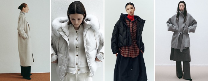 럭셔리한 분위기와 고급 소재가 강점인 델라라나(DELLA LANA)는 이번 시즌 선보인 ‘타임리스 캐시미어 컬렉션’이 인기를 끌며 지난 2주간(10/27~11/9) 아우터 매출이 전년 동기 대비 46% 증가했다. 특히 매년 사랑받는 아이코닉 코트는 이번 시즌 스티치 포인트를 더해 출시되었으며, 카멜과 세피아 색상이 빠르게 소진되며 완판을 앞두고 있다.