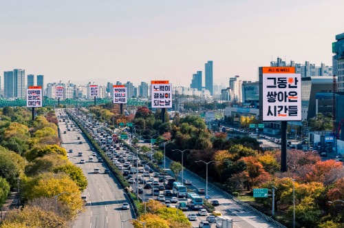 ‘길 위의 주인공, 오늘의 주인공을 응원하다’는 콘셉트로 11월 11일부터 13일까지 진행되는 이번 DOOH 캠페인은 로드블록 여의12 운영사인 올이즈웰(All Is Well)의 ‘다 잘 될 거야’라는 브랜드 철학을 모티브로 크리에이티브 대행사 투래빗츠와 함께 심플하고 주목도 높은 옥외 광고를 선보였다.