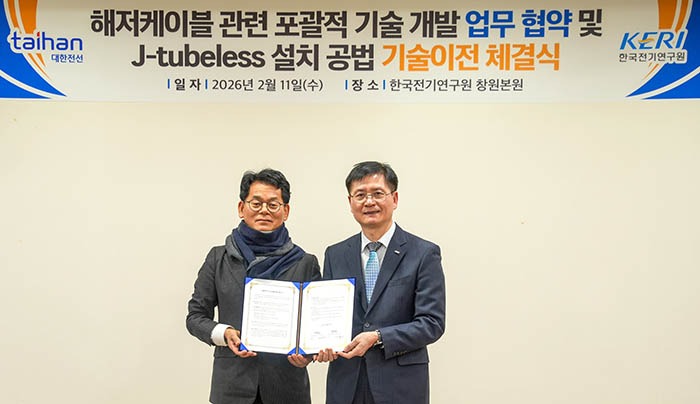 한편 대한전선과 한국전기연구원은 기술 이전 계약과 함께 ‘해저케이블 분야의 포괄적인 기술개발 협력을 위한 양해각서(MOU)’도 체결했다. 이번 MOU를 통해 양 기관은 해저케이블 특성 및 제품 평가, 설치·유지보수 기술, 포설 이후 진단·모니터링 기술 등 해저케이블 전 주기에 걸친 공동 연구 개발을 추진하며 중장기적으로 지속 협력할 예정이다.