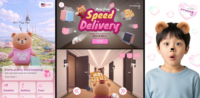 또한 신규 3인 객실 ‘디럭스 프리플룸’ 론칭을 기념해 목시 서울 인사동 투숙객에게는 호텔 16층 키오스크에서 NFC 카드 형태로 출력되는 ‘포토카드 기브어웨이’ 서비스를 제공한다. 이 카드를 휴대폰에 태깅하면 디지털 콘텐츠가 다시 실행돼 투숙 중의 경험이 체크아웃 이후에도 지속되도록 설계했다.