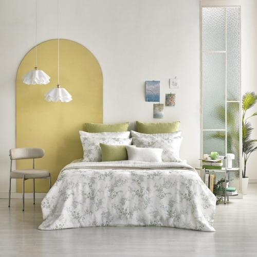 여름 신제품인 ‘헤이븐’은 100% 인견 소재 침구다. 피부에 닿는 차가운 감촉은 물론, 싱그러운 그리너리 패턴으로 디자인해 시각적인 청량감까지 선사한다. 수채화로 그린 듯한 그린 컬러의 잎사귀와 화이트 플라워 패턴이 어우러져 화사하고 생기 넘치는 침실을 연출해 준다.