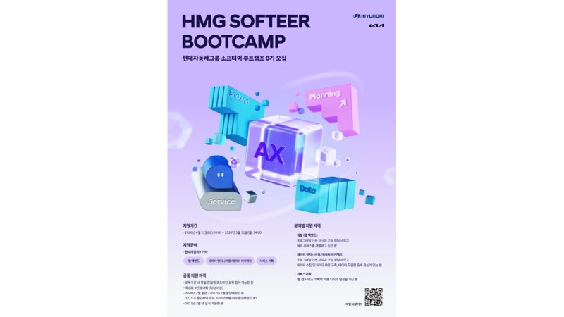 현대차·기아는 4월 22일부터 5월 11일 14시까지 소프티어 부트캠프 8기 지원자를 모집한다. '소프티어'는 소프트웨어(Software)와 엔지니어(Engineer)의 합성어로, 차량 소프트웨어 분야의 개척자(Frontier)라는 의미를 담고 있다.