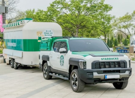 <스:벅차>는 길이 6.0m, 너비 2.3m, 높이 2.7m 규모의 무동력 트레일러로, 원형 캐빈 형태의 간결한 레이아웃에 스타벅스 그린과 화이트 컬러를 적용했다. 내부에는 에스프레소 머신과 냉장·냉동 설비 등을 갖춰 매장과 동일한 수준의 커피 품질을 안정적으로 제공할 수 있도록 설계됐다.