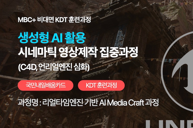 이번 과정은 100% 실시간 온라인 국비지원 교육으로 운영되며, MBC+가 직접 과정 운영을 맡고 MBC+가 인증한 강사진이 참여한다. 교육은 영상 제작과 영상 편집 역량을 넘어, 생성형 AI와 언리얼엔진을 활용한 시네마틱 영상 제작 실무 역량 강화에 초점을 맞췄다.