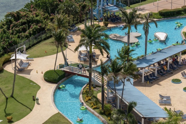 리조나레 괌은 대규모 워터파크를 중심으로 액티비티와 휴식을 동시에 즐길 수 있는 것이 특징이다. 대표 시설인 시그니처 슬라이드 ‘만타(MANTA)’는 약 12m 높이에서 급 하강하는 구조로 짜릿한 스릴을 선사하며, 부모와 아이가 함께 특별한 순간을 공유할 수 있는 체험으로 가족여행객에게 높은 만족도를 제공하고 있다. 특히 밤 시간대에 운영되는 ‘나이트 만타’는 어둠 속에서 슬라이드를 체험하는 색다른 프로그램으로 리조트에서의 밤 시간을 더욱 특별하게 완성한다. 워터파크 이용 중 식사와 휴식을 함께 해결할 수 있는 풀사이드 바 ‘슬리피 라군(Sleepy Lagoon)’ 또한, 가족여행객의 편의를 높이는 요소다. 워터파크 내에 위치해 이동 부담을 줄였으며 차모로식 BBQ, 미국식 핫도그, 일본식 교자, 소바 등 다양한 메뉴를 함께 즐길 수 있어 물놀이 흐름을 끊기지 않고 자연스럽게 휴식을 이어갈 수 있다.