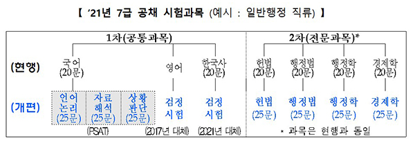 조성주 인사처 인재채용국장은 “공직을 희망하는 우수한 인재들이 내년 개편되는 시험을 사전에 충분히 인지하고 충실히 대비할 수 있기를 바란다”고 밝혔다.
