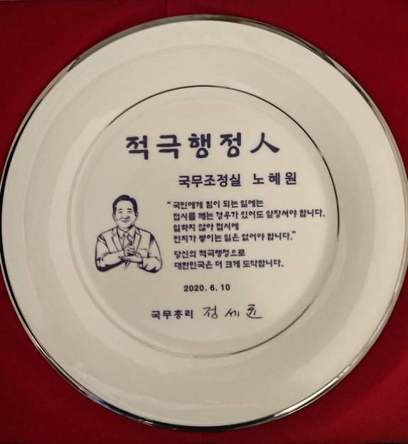 소위 ‘접시론’을 강조하며 적극행정에 앞장 서고 있는 정 총리는 적극행정을 실천한 공직자를 총리가 직접 격려하고, 공직사회의 적극행정을 확산시키고자 ‘적극행정 접시’를 마련했다.