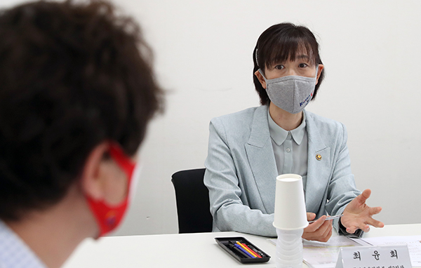 최윤희 문화체육관광부 제2차관이 14일 다음달 출범하는 스포츠윤리센터 설립을 위한 실무지원반을 방문, 현황을 점검했다.