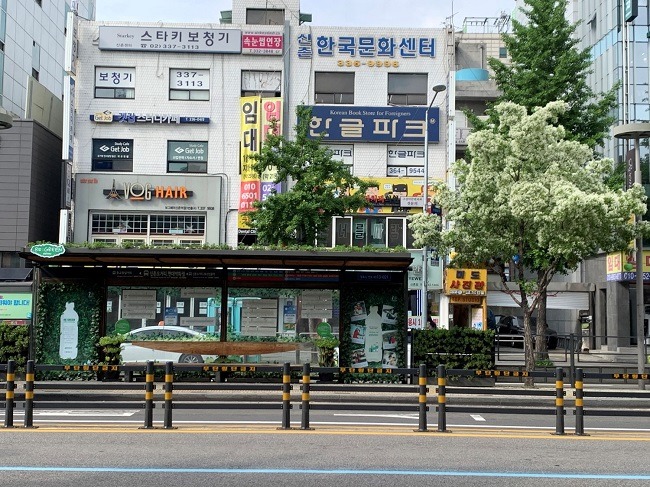 여름철 나무와 풀로 쌓인 버스정류장, 2.8℃ 온도 저감
