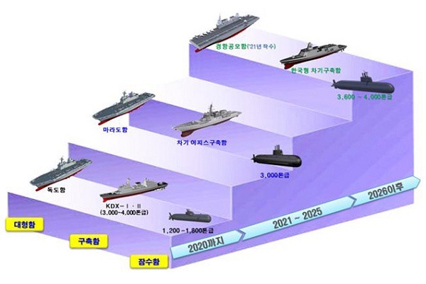 군 당국은 영해 및 한반도 주변 해역에 대한 감시·정찰 임무를 수행하고 유사시 대응능력이 강화된 3000톤급 잠수함 전력화를 완료하고 무장 탑재능력과 잠항능력이 향상된 3600톤급 및 4000톤급 잠수함을 건조할 방침이다.