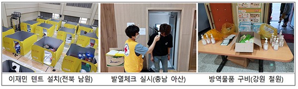 생필품·식료품 4만여 점, 구호물품 20만여 점, 텐트·칸막이 5000여 동 답지