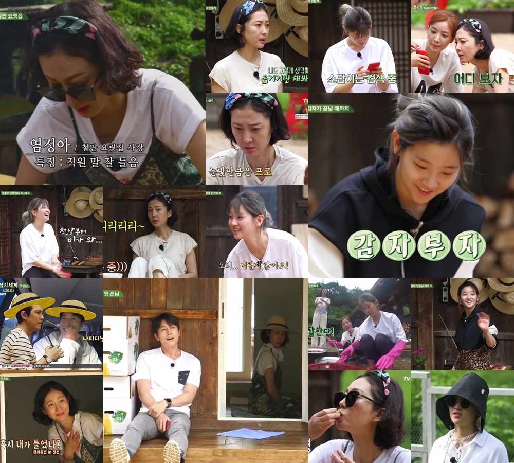 먼저 염정아는 맏언니답게 산촌 생활을 진두지휘하기도 하고, 서툴지만 뚝딱 음식을 만들어내 메인 셰프로 등극, ‘염대장’ 다운 모습을 보여주었다. 또한, 음악만 나오면 자신의 흥을 주체하지 못해 시시때때로 노래와 춤을 추는 ‘흥요정’면모로 귀엽고 꾸밈없는 매력을 발산했다.