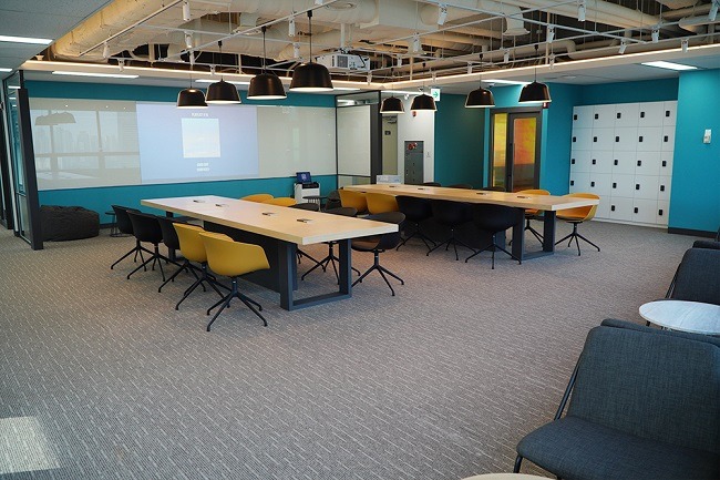 인천 송도 IBS타워 23층에 자리 잡은 지원센터는 총 292.5평의 공간에 ▲입주기업 사무실 12개실 ▲50명 수용 가능한 컨퍼런스룸 ▲중소 회의실 2개실 ▲컨설팅룸 및 20석 규모의 공유오피스 ▲1인 크리에이터 스튜디오 등으로 조성되었다.
