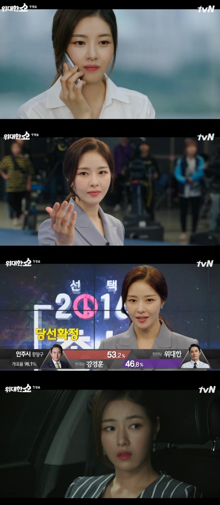 박하나는 첫 등장부터 국회의원 선거 개표방송을 진행하는 아나운서로 시청자의 시선을 사로잡았다. 특히 위대한의 잠재력에 끌려 비밀연애 중이었지만, 선거에서 낙선하자 냉정하게 이별을 고하는 모습을 도도한 눈빛으로 표현해내며 그동안 보여준 적 없던 새로운 매력을 선보였다.