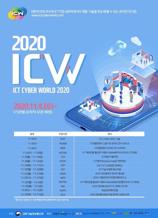 코로나19 이후 해외 판로개척에 어려움을 겪고 있는 국내 정보통신 기업을 지원하기 위한 플랫폼인 ‘ICT Cyber World(이하 ICW)‘가 출범했다.