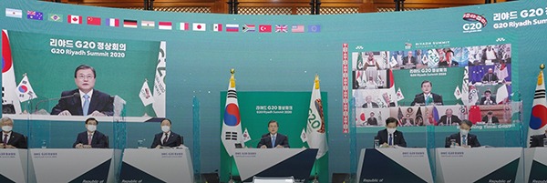 또한 지난 3월 열린 G20 특별정상회의로 인한 국제사회의 연대 및 협력 성과를 조목조목 제시했는데, 보건의료 재원 210억 달러 관련 및 그에 따른 백신·치료제 개발과 공평한 보급을 위한 액트-에이(ACT-A) 출범, 회원국들의 총 11조 달러에 따르는 확장적 재정 정책 단행, 저소득국 채무 상환 유예, 세계은행·국제통화기금·세계보건기구·유엔과의 협력 등을 꼽았다.