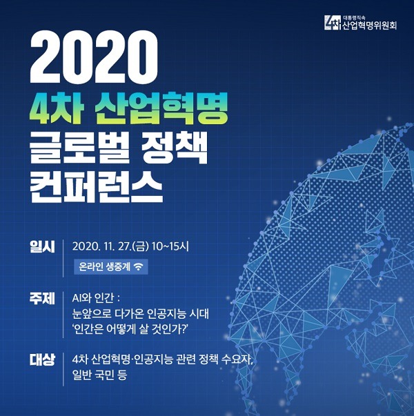 대통령직속 4차산업혁명위원회(이하 4차위)는 이날 온라인 생중계로 ‘2020 4차 산업혁명 글로벌 정책 컨퍼런스(Global Policy Trends on the 4th Industrial Revolution 2020)’를 개최한다고 전했다.