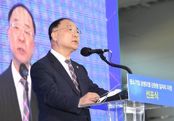 홍 부총리는 이날 강원 횡성 우천일반산단 디피코 공장에서 열린 ‘강원형 일자리 선정기념식’에 참석해 축사를 통해 이같이 밝혔다.