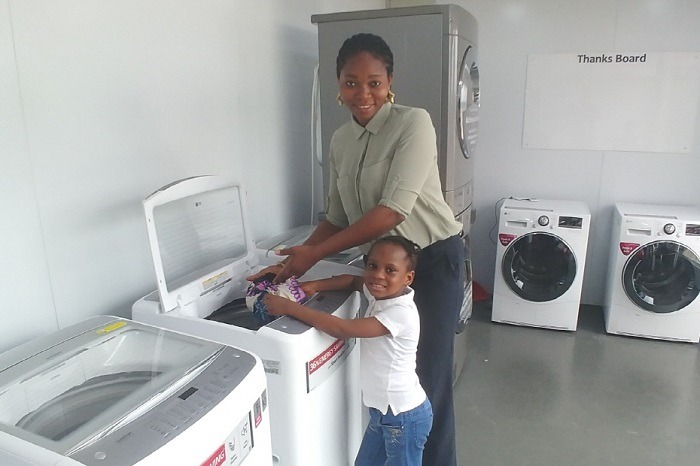 LG전자는 주민들을 위해 세탁방에 최신 세탁기, 건조기 외에 다리미, 섬유유연제, 세탁세제 등 빨래와 의류관리에 필요한 용품도 비치하고 에어컨도 설치했다. 또 이곳에는 갑작스런 정전에도 주민들이 세탁방을 사용할 수 있도록 무정전 전력공급기도 있다.
