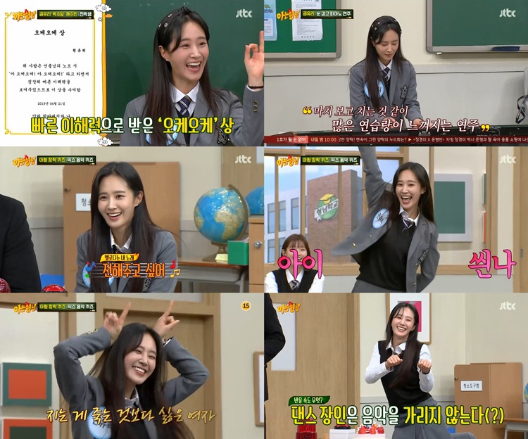 여기에 권유리는 정답을 맞춘 기념으로 소녀시대 데뷔곡 ‘다시 만난 세계’에 맞춰 안무를 완벽 재현, 변함없는 실력과 외모로 감탄을 불러일으켰으며, 레전드 퍼포먼스부터 히트곡 댄스까지 열정 넘치는 자세와 숨길 수 없는 흥으로 ‘아는 형님’을 제대로 접수했다.