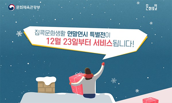 문화체육관광부는 23일부터 내년 1월 3일까지 국공립 문화예술기관이 제공하는 비대면 공연·전시·행사 등을 한자리에서 쉽게 확인할 수 있는 통합안내 누리집 ‘집콕 문화생활 연말연시 특집(Culture.go.kr/home)’을 운영한다.